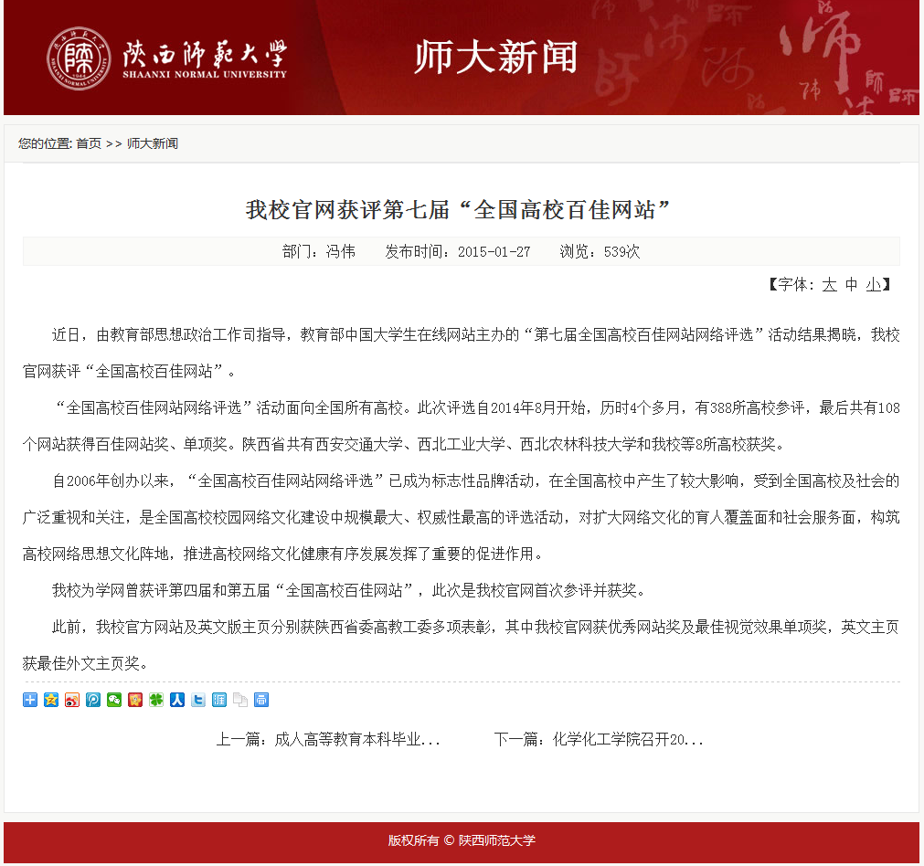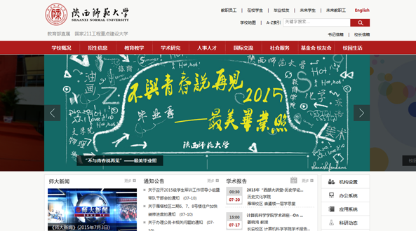 上線(xiàn)時(shí)間 :2014.01   關(guān)鍵詞:穩重、突破  網(wǎng)址:http://www.snnu.edu.cn