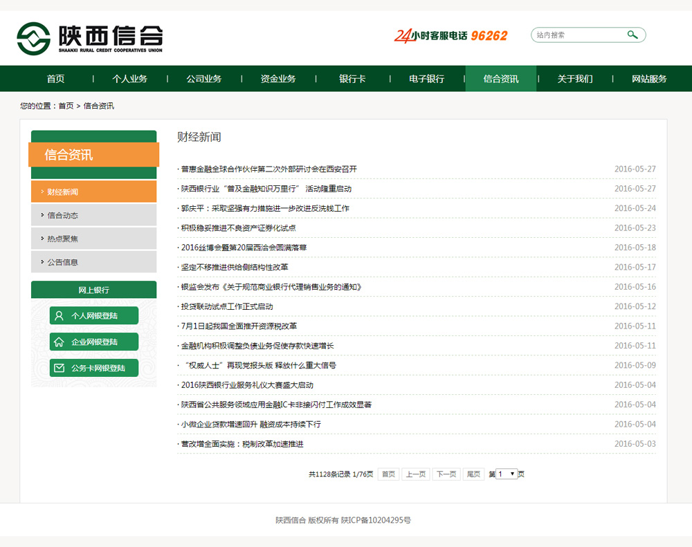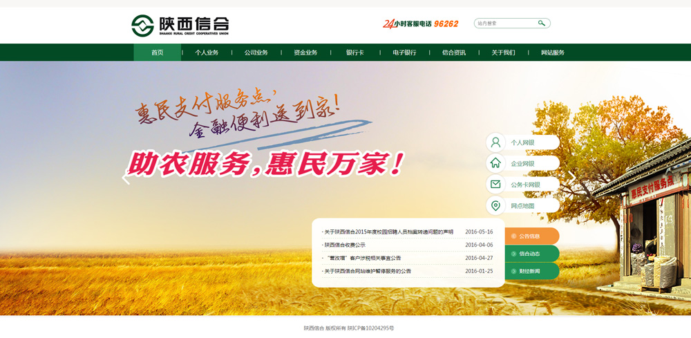 尤其是信合網(wǎng)站,視覺(jué)上,首頁(yè)采用當下最流行的大圖模式,突出業(yè)務(wù)及服務(wù)、最新動(dòng)態(tài)及儲戶(hù)常用的快捷鏈接,簡(jiǎn)約、大氣、重點(diǎn)鮮明,內頁(yè)采用最被大家接受的左分類(lèi)右內容的版式,便于訪(fǎng)問(wèn)者瀏覽信息;